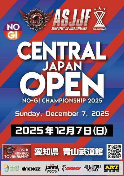Central Japan Open Jiu Jitsu Championship 2025 2025年 12月 6日(土)- 7日(日) 愛知県 青山記念武道館 大会概要・エントリーページ 参加者一覧 |