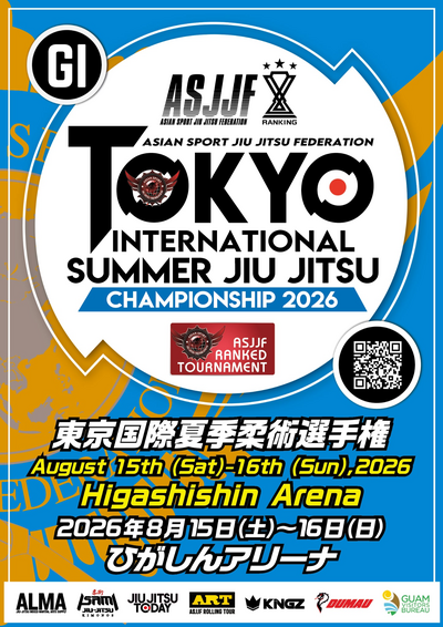 Tokyo International Summer Jiu Jitsu Championship 2026 2026年 8月 15日(土)-16日(日) 東京都 墨田区総合体育館(ひがしんアリーナ) 大会概要・エントリーページ 参加者一覧 |