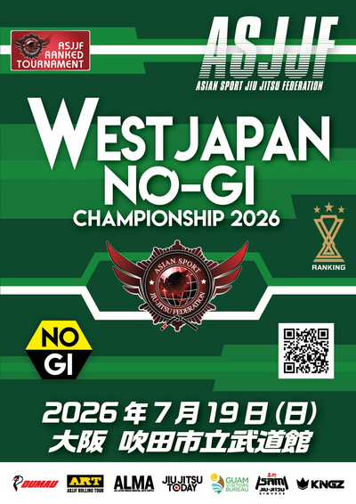 West Japan No-gi Championship 2026 (no-gi Event) 2026年 7月 19日(日) 大阪府 吹田市立武道館 大会概要・エントリーページ 参加者一覧 |